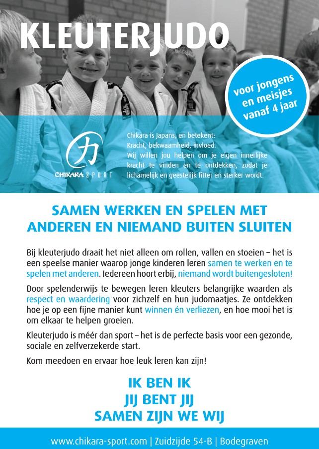 dé judoschool voor jong en oud van Bodegraven en omstreken. Chikara komt uit het Japans en betekent: kracht, bekwaamheid of invloed. Wij streven ernaar om jou je (eigen) innerlijke kracht te laten (her)ontdekken, zodat je fitter, sterker en energieker wordt.